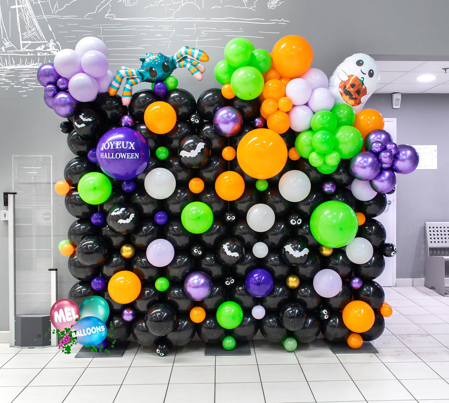 Mur de ballons pour Halloween, dia de los muertos, en Savoie à Chambéry